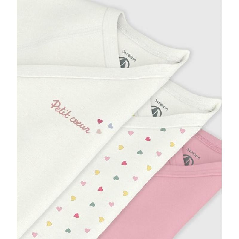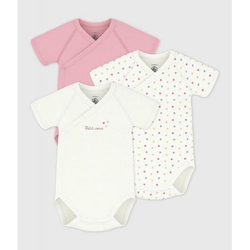 Lot de 3 bodies croisés manches courtes fille en côte 1X1, une matière extensible et confortable.